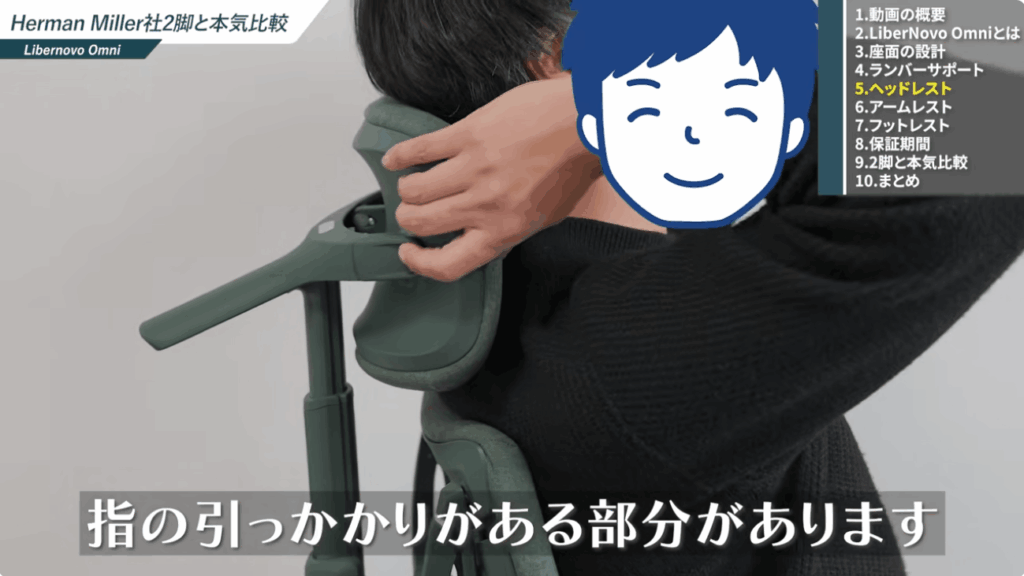 Libernovo Omniのヘッドレストは、高さと前後、角度を変えることができる3Dヘッドレストを採用しています。