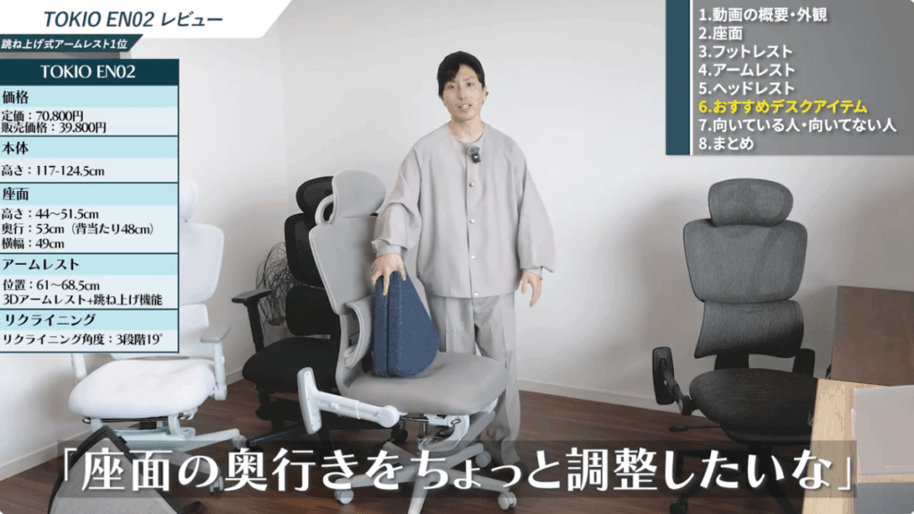 なお、Mr.ChairsのECサイトからTOKIO EN02を購入してくれた人限定で「ベストフィット動画」をプレゼントしています。